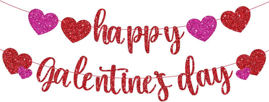 Valentine's Day Party Decoration Set, Heart Balloons, Tassels, Garlands, and Hanging Paper Fans for Anniversaries, Proposals, and Celebrations (Hanging Galentine's Day)